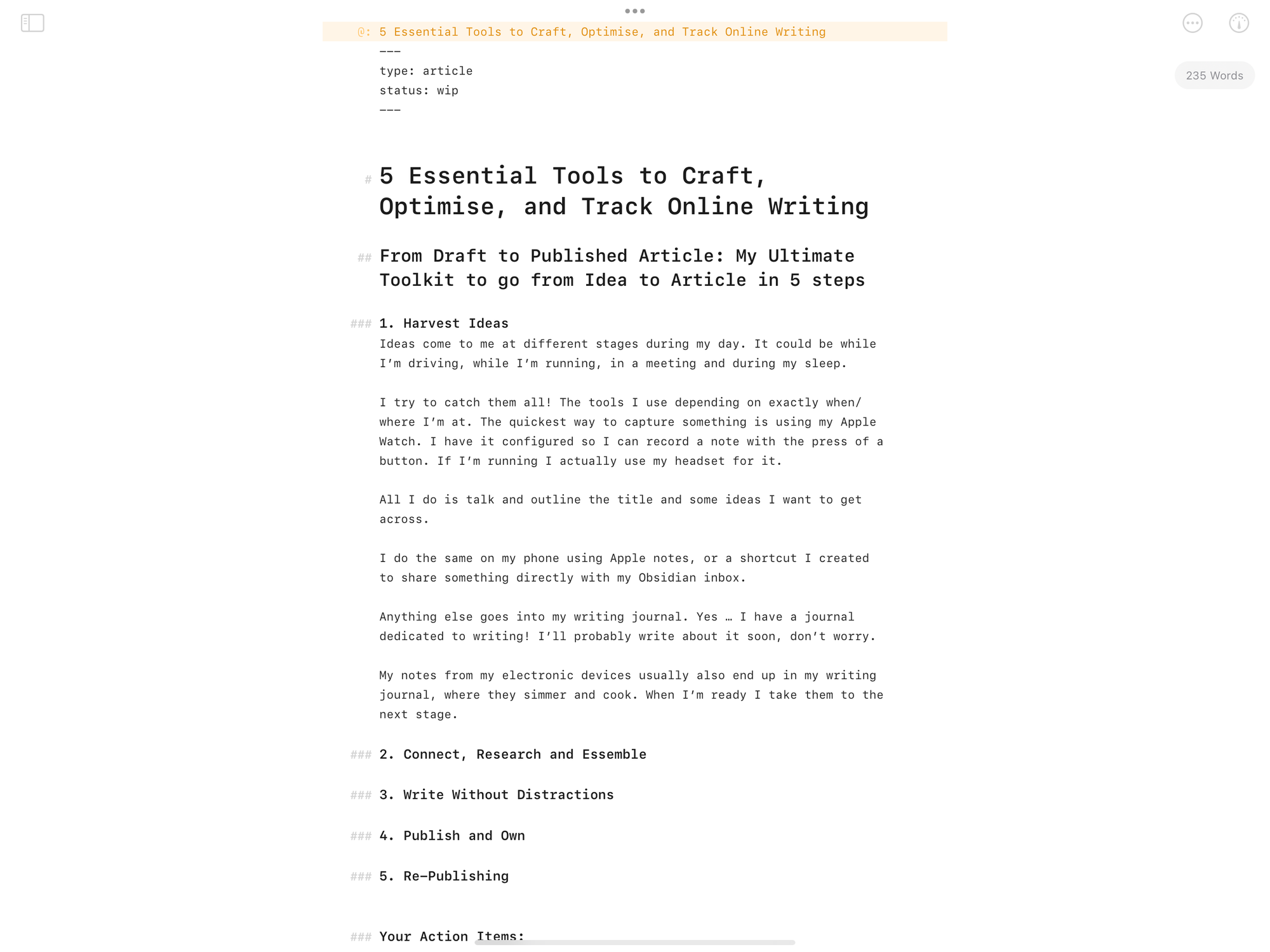 I write and publish 'mostly' daily and needed a workflow that allows me to go from idea to published article in a frictionless way.